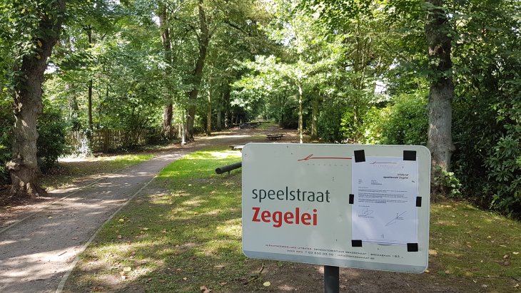 De speeltoestellen aan het speelterrein / speelstraat Zegelei zijn versleten, zo laat de gemeente Brasschaat via een melding op het bord weten.